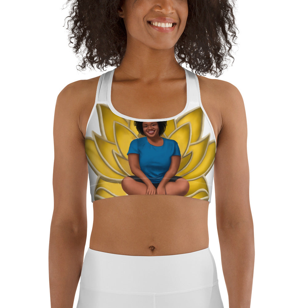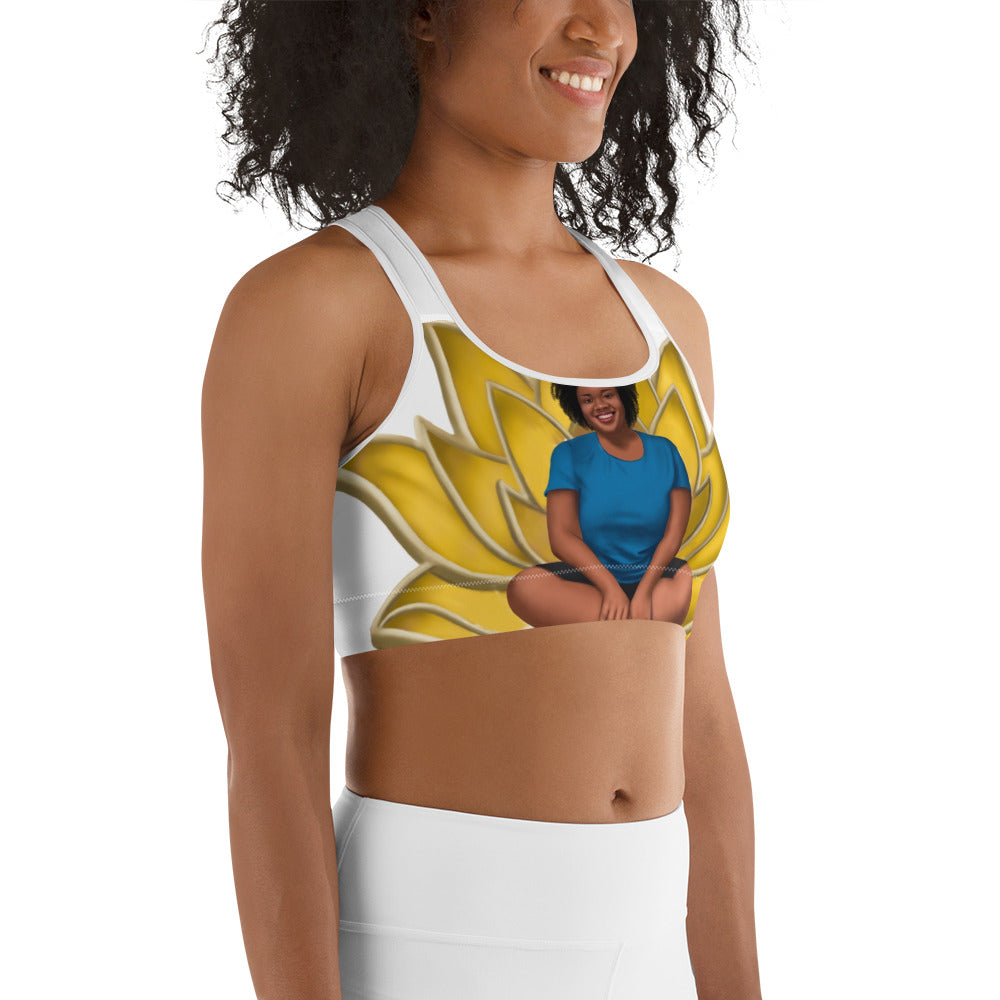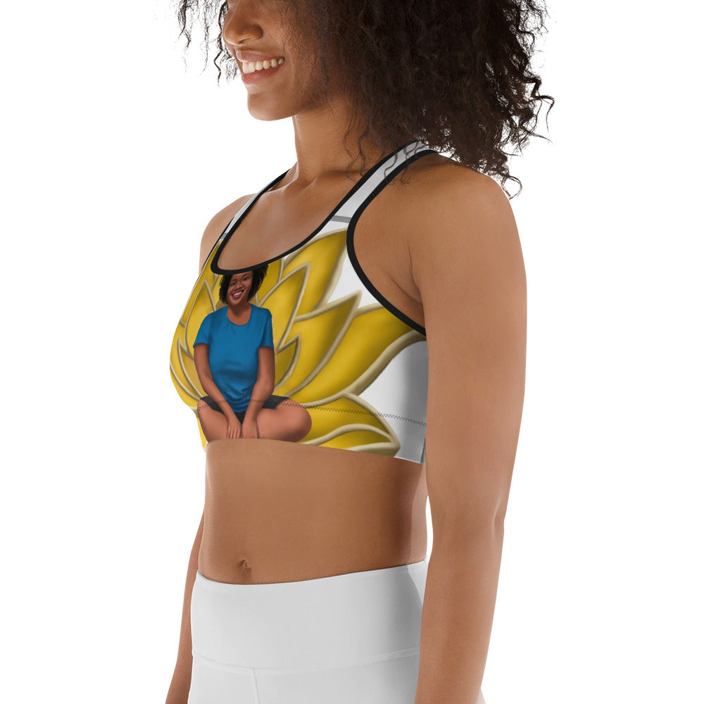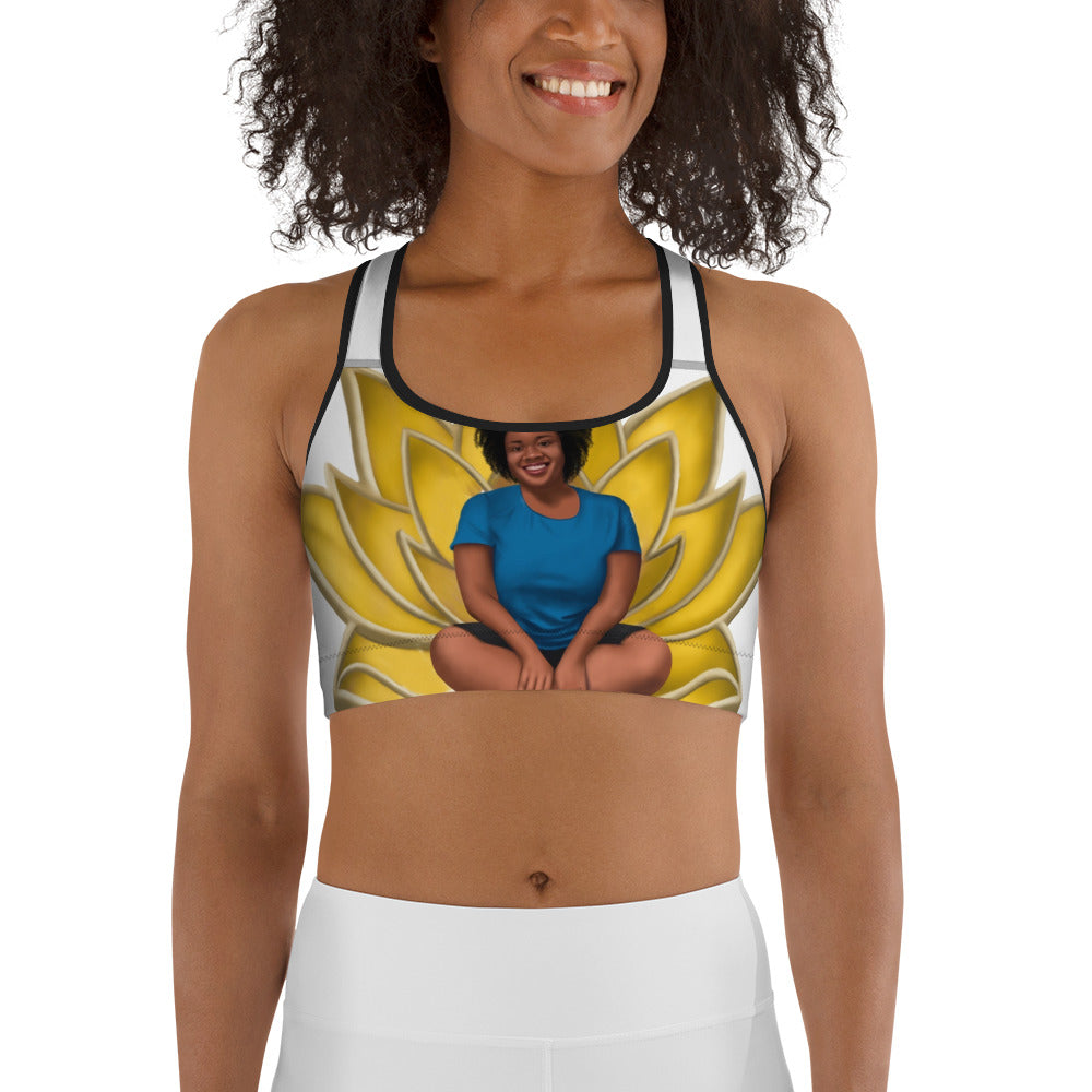 This gorgeous sports bra is made from moisture-wicking material that stays dry during low and medium intensity workouts. The bra has support material in the shoulder straps, double layer front, and a wide elastic band to ensure constant support.